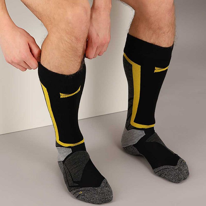 De Xtreme Snowboard sokken in grijs met geel combineren stijl met functionaliteit. Deze technische wintersportsokken zijn speciaal ontworpen voor snowboarders die waarde hechten aan warmte, comfort en prestaties.