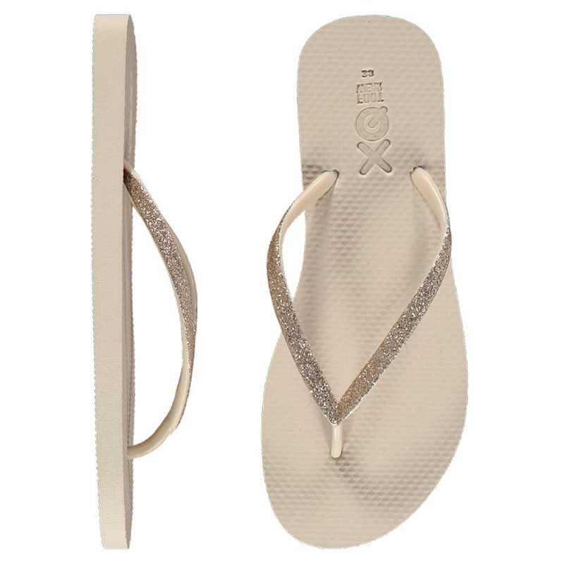 Verwen jezelf met comfort en natuurlijke stijl! Bestel vandaag nog jouw XQ Dames Slippers met Glitterbandjes Zand en stap stralend de zomer in.