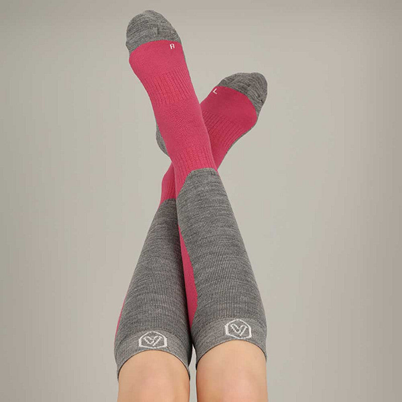 Stijlvolle en warme skisokken in roze voor dames. Deze Apollo skisokken combineren functionaliteit met een frisse kleur, perfect voor op de piste.